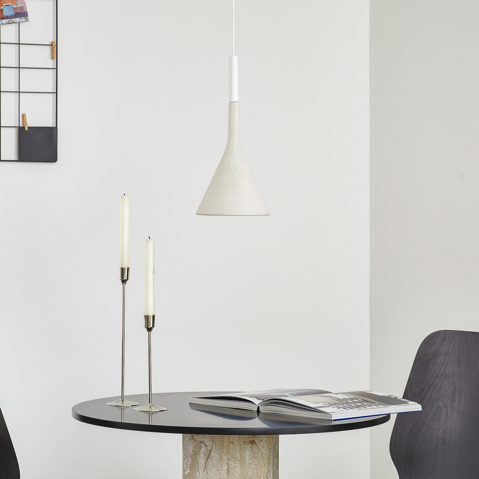 Versatile e discreta, Aplomb GU10 Sospensione è una lampada dal segno leggero e dall'eleganza straordinaria. La sua semplicità formale è valorizzata dal cemento del diffusore, al tempo stesso grezzo e raffinato. Le piccole dimensioni la rendono una scelta perfetta per valorizzare un elemento decorativo e funzionale come un tavolino, un tavolo o una penisola.