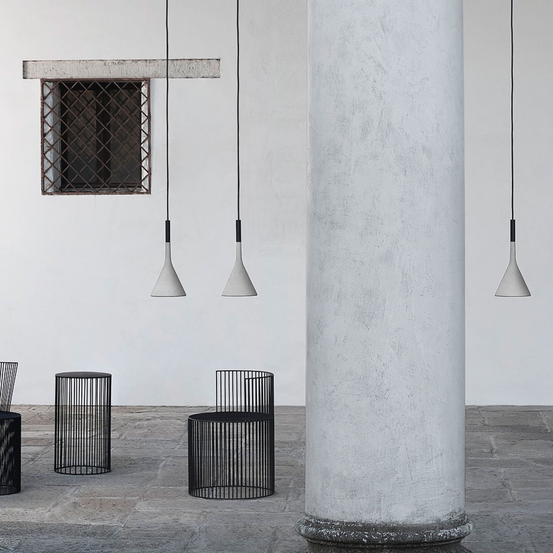 Aplomb Sospensione Outdoor è parte di un'ampia famiglia di lampade progettata dal duo Lucidi e Pevere per Foscarini. L'architettura essenziale e moderna delle lampade Aplomb rende questa collezione tra le più rappresentative dello stile Foscarini.