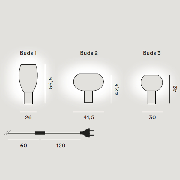 Raffinata ricchezza e materiali preziosi: in Buds il vetro soffiato è protagonista assoluto, accostato ad una base trasparente che ne valorizza la purezza formale. Buds 1 ha la forma più allungata, nei colori marrone o bianco caldo che cambiano da spenta o accesa.