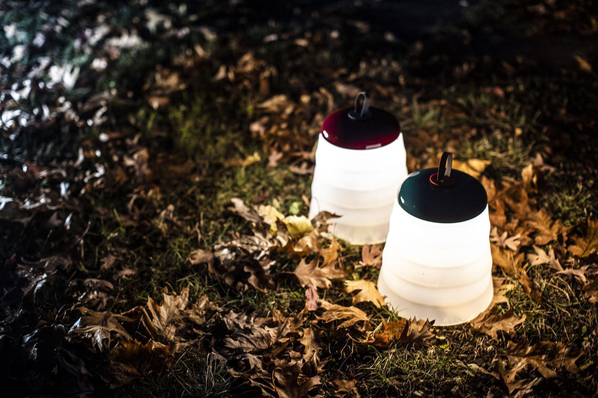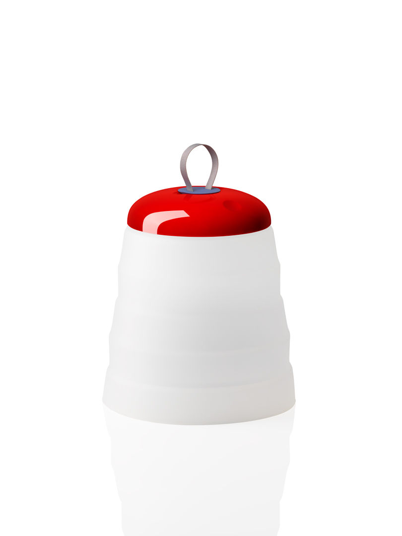 Scomponibile nelle sue varie parti, Cri Cri Lampada Outdoor è disponibile in rosso o verde acqua per ambientarsi al meglio in un ricco giardino, per illuminare una serata in spiaggia o un pic nic su prato.