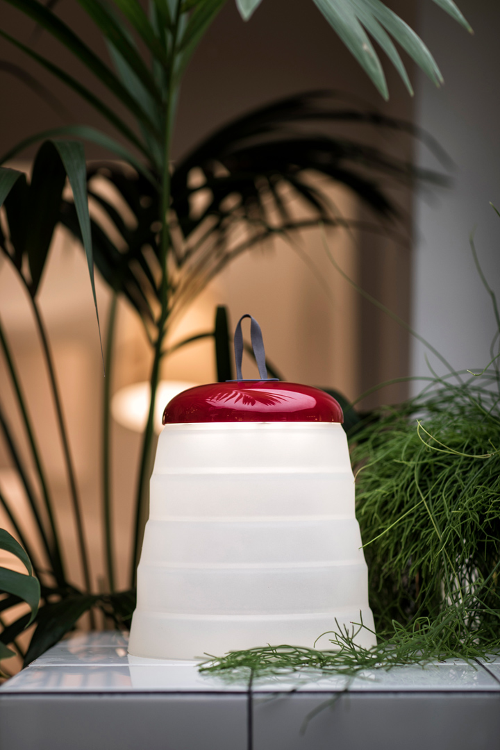Scomponibile nelle sue varie parti, Cri Cri Lampada Outdoor è disponibile in rosso o verde acqua per ambientarsi al meglio in un ricco giardino, per illuminare una serata in spiaggia o un pic nic su prato.