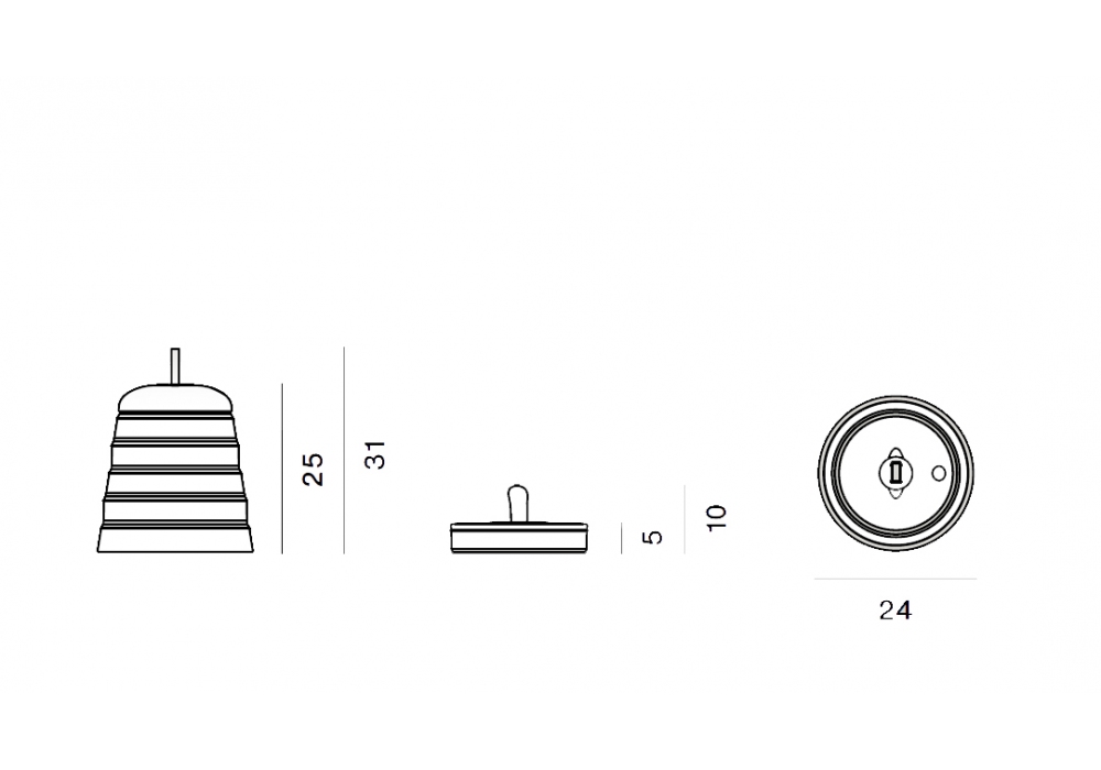 Dimensioni: Ø 23,5 cm - H. 30,8 cm Sorgente luminosa: LED 2,4W. Dimmerabile. Batteria ricaricabile interna. Materiali: silicone, ABS e PMMA Finiture: rosso.