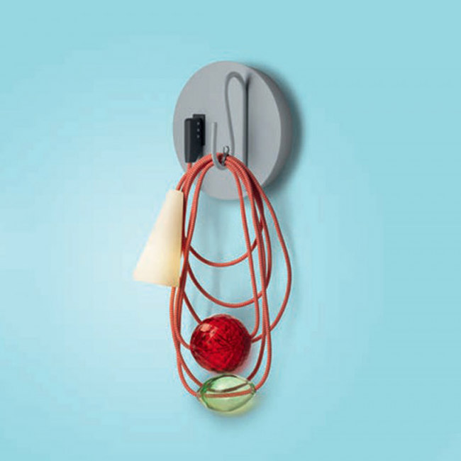 Filo Parete è parte di una famiglia di lampade firmata da Andrea Anastasio per Foscarini. Filo Pareteè una lampada disponibile in diverse combinazioni di colore dei suoi elementi: base in metallo verniciato, corpo in cavo tessile, accessori e paralume in vetro soffiato e porcellana.