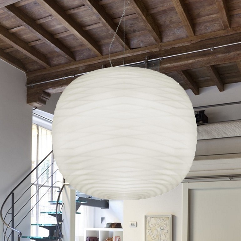 Gem Sospensione è un progetto disegnato da Ludovica e Roberto Palomba per Foscarini. Versione LED. La lampada a sospensione Gem è un corpo illuminante dal fascino seducente e prezioso. Gli effetti luminosi di Gem creano una "vibrazione fluida" che illumina e decora al tempo stesso.