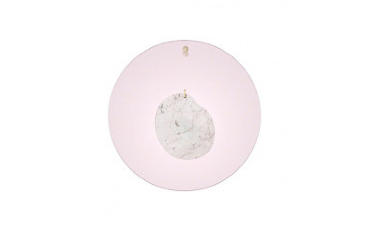 La magia della lampada sta nella composizione: un elemento in marmo statuario collocato al centro di un disco in Perspex trasparente. A unire i due materiali, un unico anello impreziosito da una lavorazione artigianale; l’insieme è a sua volta fissato alla parete da un piccolo perno. I due elementi, liberi di muoversi, ricordano il ritmo oscillante di un pendente o di un orecchino. La trasparenza del PMMA contrasta con l’opacità del marmo: è l’incontro tra un passato che richiama la statuaria, i fregi e le grandi opere architettoniche e un presente fatto di invenzioni e di materiali sintetici. In Gioia la parte funzionale della lampada è slegata da quella decorativa. La luce proviene dalla fonte luminosa LED a parete, che lascia all’elemento decorativo piena libertà di movimento.