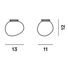 Caratteristiche tecniche Dimensioni L. 13 cm - P. 11 cm - H. 12 cm Sorgente luminosa: 1 × 20W G9 LED retrofit o Halo. Materiali: vetro soffiato acidato e metallo verniciato. Finitura: diffusore bianco satinato; portalampada bianco; ghiera trasparente; rosone bianco opaco.