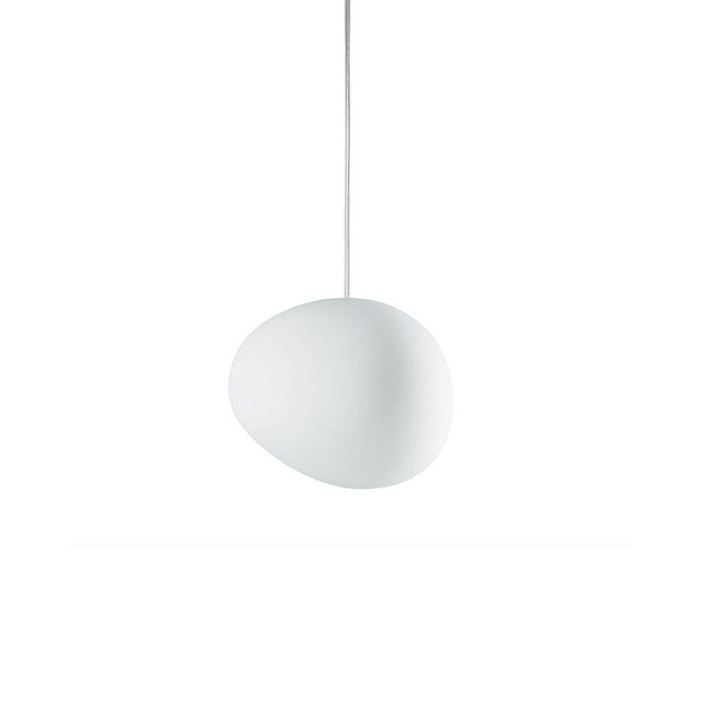 Gregg Sospensione Piccola è parte di un'ampia famiglia di lampade disegnata da Ludovica e Roberto Palomba per Foscarini. La luce diffusa unita al suo design estremamente contemporaneo fanno delle lampade Gregg un vero must della collezione Foscarini. Il diffusore in vetro satinato soffiato a bocca e acidato è sorretto da una ghiera e da un portalampada in policarbonato.