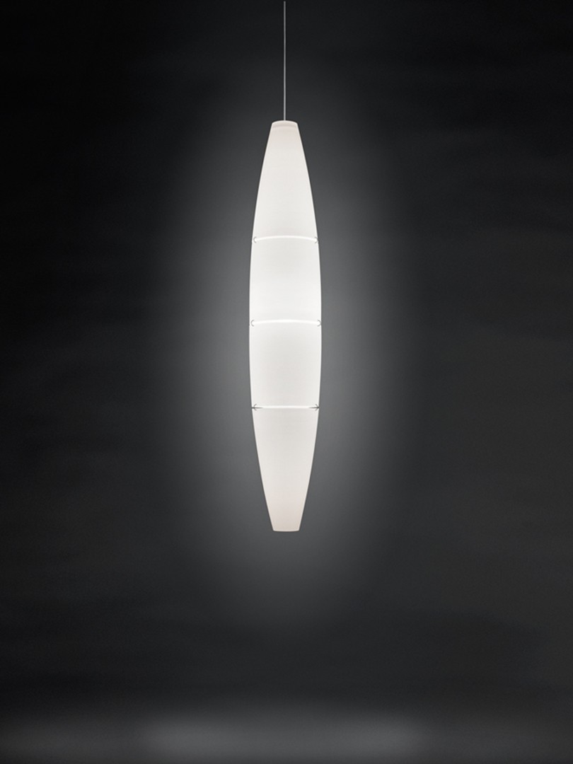 Havana di Foscarini è una lampada a sospensione formata da quattro sezioni unite da ganci che lasciano spazio a tre sottili fasce vuote che si riempiono di luce quando la lampada è accesa. Facilmente adattabile a svariati contesti e stili.