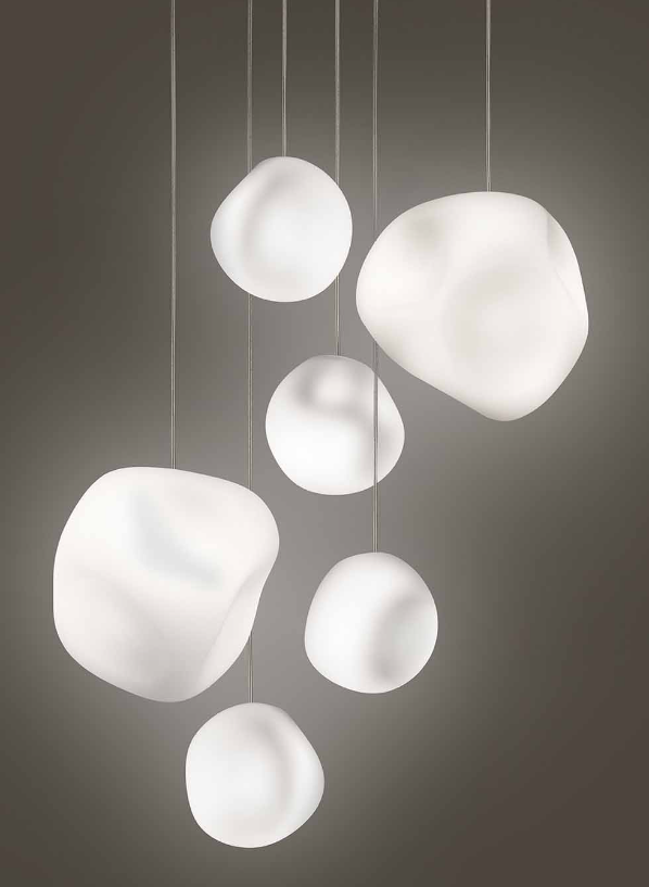 Lampada a sospensione a luce diffusa. Hoba si ispira nella sua forma asimmetrica e irregolare all’omonimo meteorite, scoperto in Namibia nel 1920. Diffusore in vetro opale soffiato a bocca acidato con procedura di soffiatura del vetro non ruotato in uno stampo aperto che permette di ottenere forme leggermente diverse una dall’altra. Una collezione di pezzi sempre diversi, realizzati in serie ma con le caratteristiche di unicità del fatto a mano. La luce è calda e avvolgente, perfetta per illuminare gli spazi sia da sola sia in composizioni che sfruttano le diverse misure disponibili. Sistema di sospensione con cavo autoportante nella versione piccola e midi; versione media e grande con cavo d’acciaio e cavo elettrico trasparente.