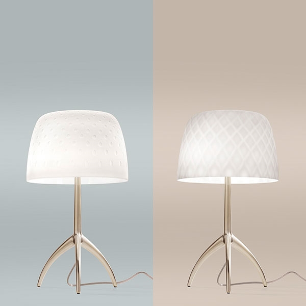 Edizione speciale di un classico di design proposta in occasione del suo trentennale. Con Lumiere 30th per la prima volta il decoro sulla superficie del vetro diventa tridimensionale: la classe resta immutata, e ne guadagna il carattere. Realizzata in vetro soffiato e alluminio verniciato, questa iconica lampada da tavolo si adatta perfettamente ad ogni interno.
