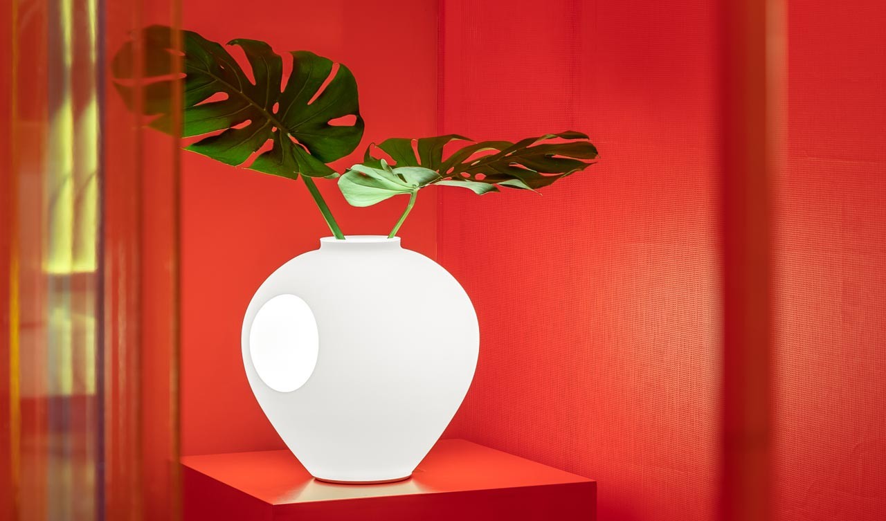 Madre è un oggetto dal contenuto poetico, pieno di riferimenti. Qui si esplora ogni aspetto della luce come elemento generatore di vita: miti, statuette, il movimento dei corpi celesti, l'alternarsi del giorno e della notte.La cavità superiore del grande corpo luminoso di Madre contiene un vaso in vetro borosilicato smerigliato, in cui collocare dei rami per creare una composizione elegante.L'apertura - che sembra interrompere il vaso proprio al centro - crea profondità, facendo riflettere la luce anche a lampada spenta. C'è qualcosa di magico: l'apertura è un punto di confine e di scambio tra luce interna ed esterna, unite in un'unica immagine.