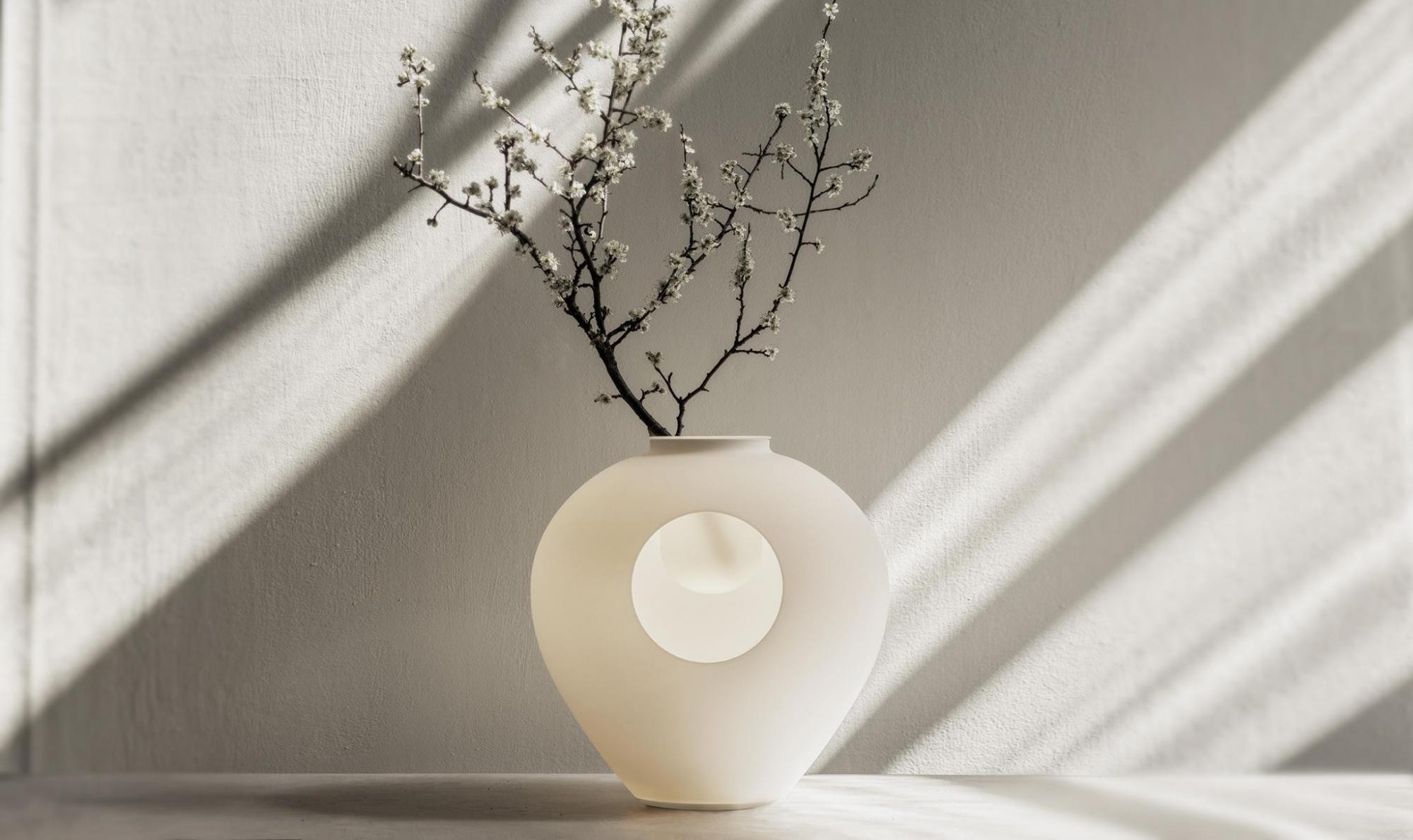 Madre è un oggetto dal contenuto poetico, pieno di riferimenti. Qui si esplora ogni aspetto della luce come elemento generatore di vita: miti, statuette, il movimento dei corpi celesti, l'alternarsi del giorno e della notte.La cavità superiore del grande corpo luminoso di Madre contiene un vaso in vetro borosilicato smerigliato, in cui collocare dei rami per creare una composizione elegante.L'apertura - che sembra interrompere il vaso proprio al centro - crea profondità, facendo riflettere la luce anche a lampada spenta. C'è qualcosa di magico: l'apertura è un punto di confine e di scambio tra luce interna ed esterna, unite in un'unica immagine.
