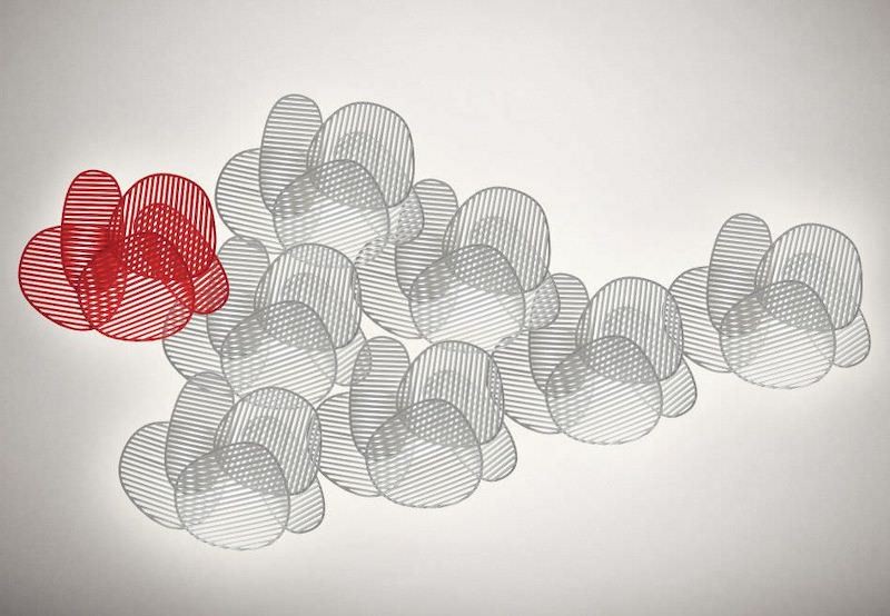 Foscarini Nuage lampada da parete e soffitto, design di Philippe Nigro, 2012. Struttura policarbonato stampato a iniezione ABS masterizzato. Disponibile nel colore: rosso. Nuage grazie alla particolarità del suo disegno e all’inedito insieme di luci ed ombre gioca sulla diversa percezione della figura, spostandosi cambiando il punto di osservazione. Nuage è un effetto luminoso sulla parete o sul soffitto che cambia a seconda dei punti di vista. Il diffusore a guscio è in policarbonato traslucido opalino stampato a iniezione. Le 5 lastre di due forme diverse, già montate, sono in ABS masterizzato opaco. Codice prodotto: 243005 63