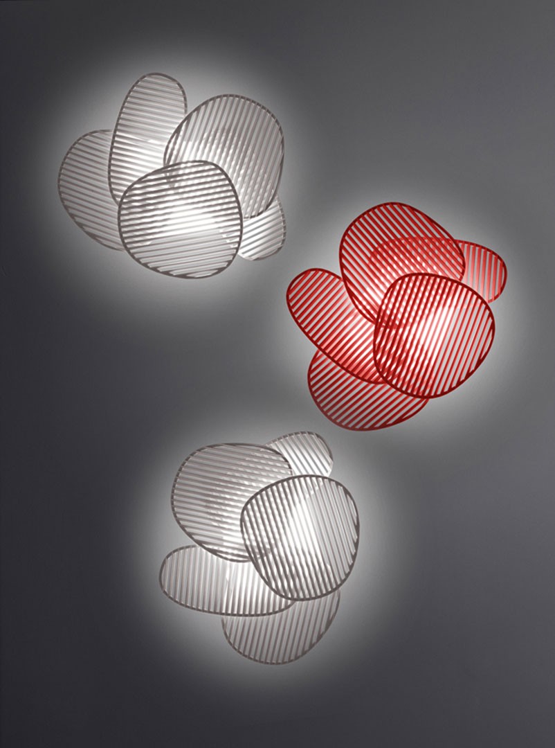Foscarini Nuage lampada da parete e soffitto, design di Philippe Nigro, 2012. Struttura policarbonato stampato a iniezione ABS masterizzato. Disponibile nel colore: rosso. Nuage grazie alla particolarità del suo disegno e all’inedito insieme di luci ed ombre gioca sulla diversa percezione della figura, spostandosi cambiando il punto di osservazione. Nuage è un effetto luminoso sulla parete o sul soffitto che cambia a seconda dei punti di vista. Il diffusore a guscio è in policarbonato traslucido opalino stampato a iniezione. Le 5 lastre di due forme diverse, già montate, sono in ABS masterizzato opaco. Codice prodotto: 243005 63