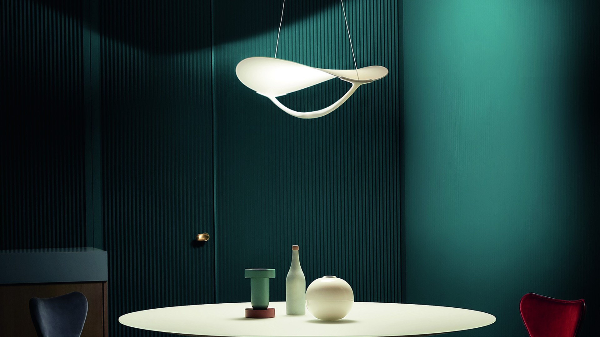 Grande nelle dimensioni ma dalla presenza dinamica e leggera, Plena ha una doppia illuminazione: riflessa sul piano sottostante e diffusa verso il soffitto. È una luce di speciale fascino e interesse, capace di illuminare completamente una stanza pur mantenendosi morbida e avvolgente. Se collocata sopra un tavolo, Plena non abbaglia mai.