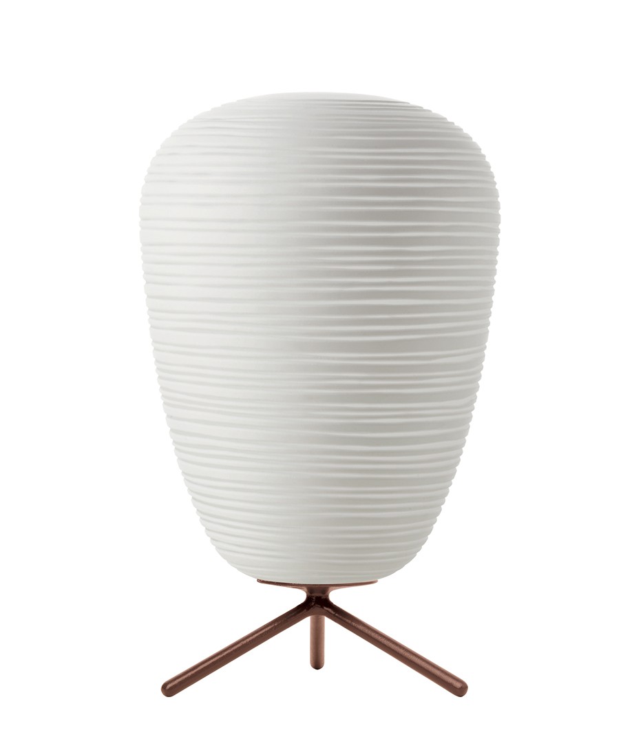 Una sfida: tradurre la leggerezza della carta washi delle lanterne orientali in un gruppo di lampade in vetro. Solo l ‘esperienza di Foscarini abbinata alla destrezza dei maestri di Murano rende possibile questo creazione. Una nuova famiglia di lampade da tavolo tutte concentrate sul diffusore, definito dal volume e dalla matericità del vetro.Lampade da tavolo a luce diffusa. Collezione di tre forme di diffusore in vetro soffiato con effetto rigato ottenuto con uno stampo con decorazioni in negativo che vengono ripetute nella superficie del vetro, in seguito molato a mano a nastro e sottoposto a procedimento di immersione in acido al fine di ottenere l’effetto gessoso. Rituals crea una illuminazione molto privata, emozionale. Ognuna di loro ha una funzionalità ed un posizionamento diverso. Da un tavolo per la versione più bassa, la più alta da lettura, come la più piccola per un comodino.