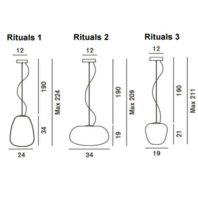 Rituals 3 Sospensione è una lampada in vetro disegnate da Ludovica+Roberto Palomba per Foscarini. L'effetto rigato del vetro soffiato caratterizza questa collezione di lampade dal design sinuoso e avvolgente. L'effetto gessoso, ricavato da un processo manuale, valorizza la particolare texture di Rituals amplificando il risultato estremamente elegante.