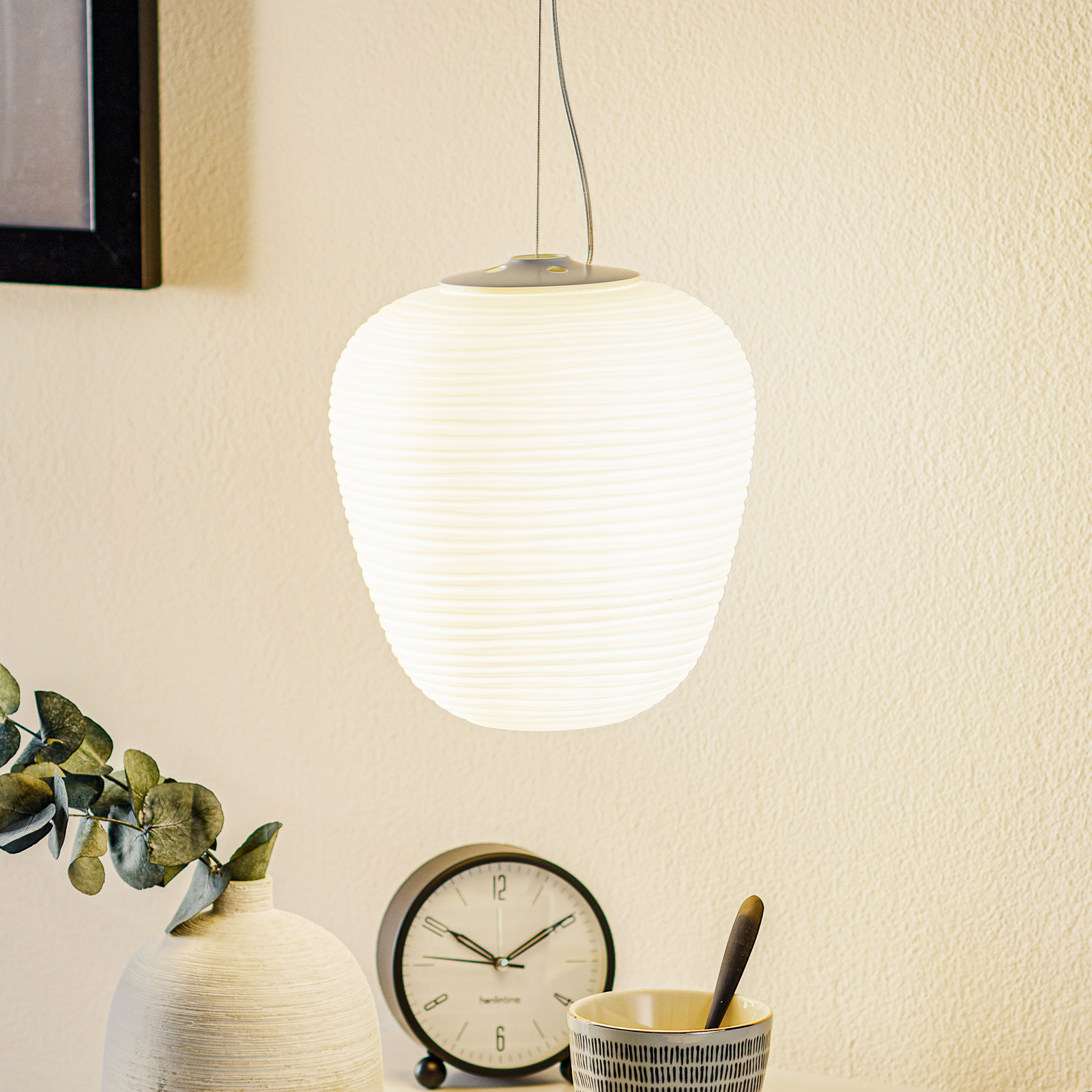 Rituals 3 Sospensione è una lampada in vetro disegnate da Ludovica+Roberto Palomba per Foscarini. L'effetto rigato del vetro soffiato caratterizza questa collezione di lampade dal design sinuoso e avvolgente. L'effetto gessoso, ricavato da un processo manuale, valorizza la particolare texture di Rituals amplificando il risultato estremamente elegante.