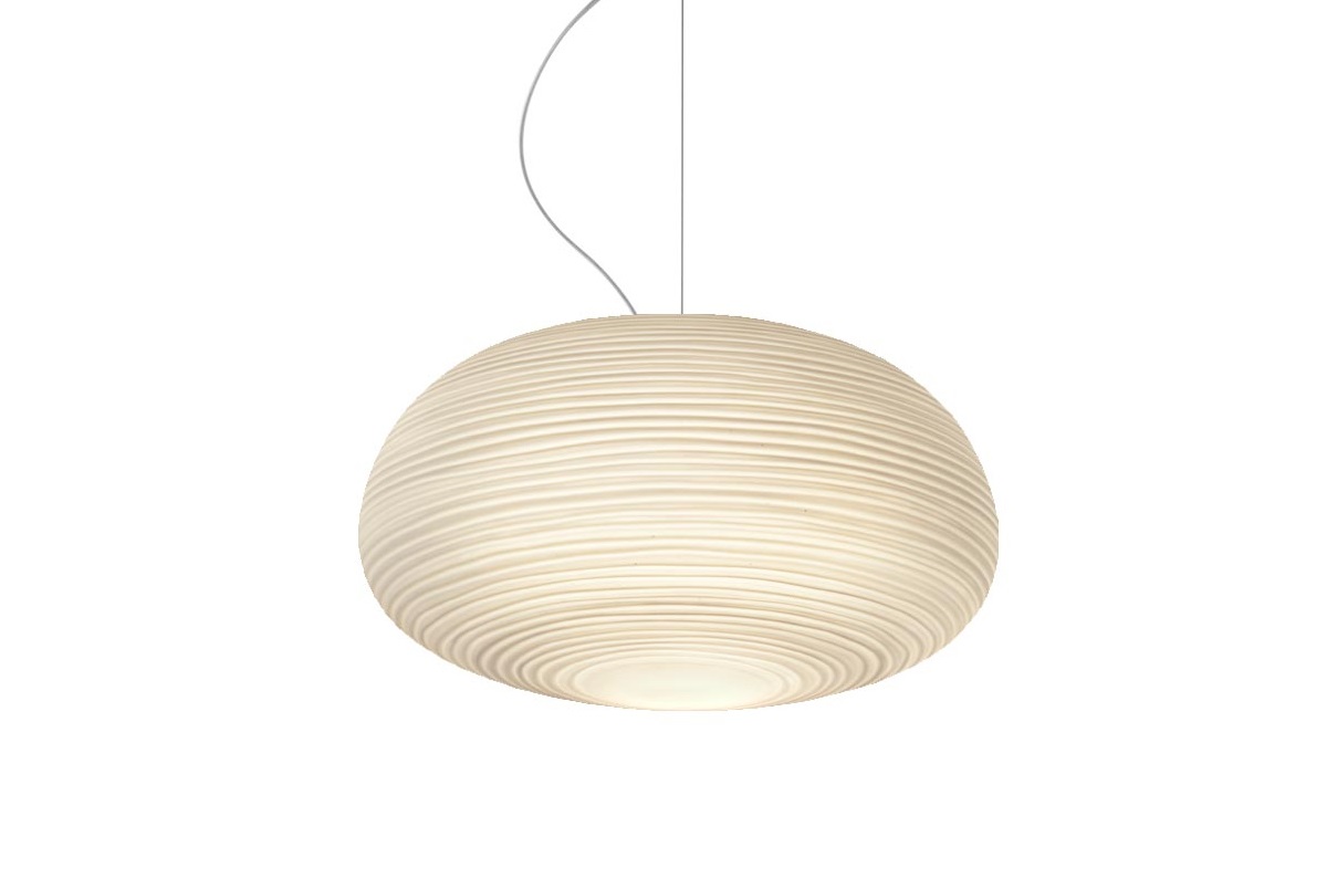 Rituals 2 Sospensione è una lampada in vetro disegnate da Ludovica+Roberto Palomba per Foscarini. L'effetto rigato del vetro soffiato caratterizza questa collezione di lampade dal design sinuoso e avvolgente. L'effetto gessoso, ricavato da un processo manuale, valorizza la particolare texture di Rituals amplificando il risultato estremamente elegante.