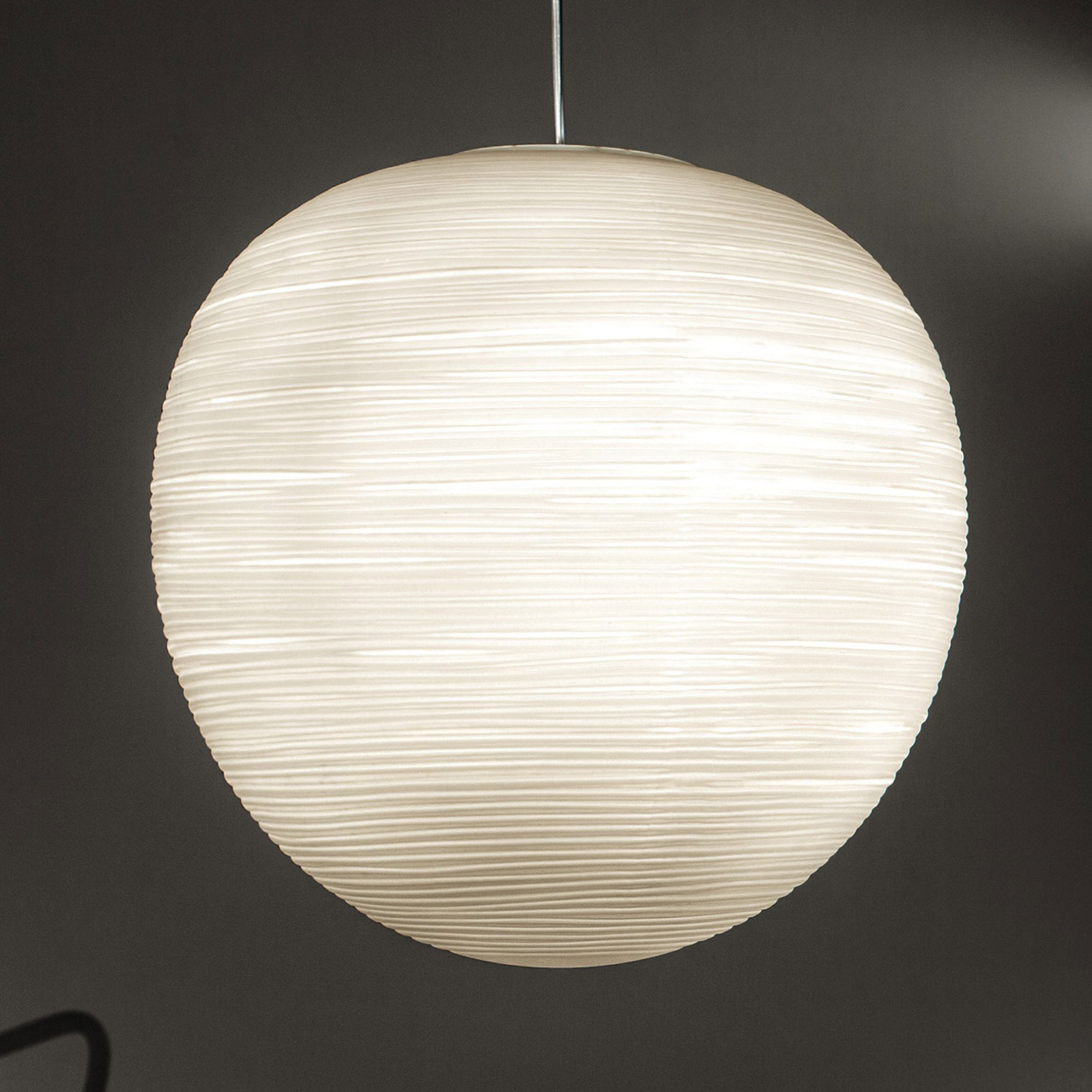 Rituals XL Sospensione è una lampada in vetro disegnate da Ludovica+Roberto Palomba per Foscarini. Versione LED L'effetto rigato del vetro soffiato caratterizza questa collezione di lampade dal design sinuoso e avvolgente. L'effetto gessoso, ricavato da un processo manuale, valorizza la particolare texture di Rituals amplificando il risultato estremamente elegante.
