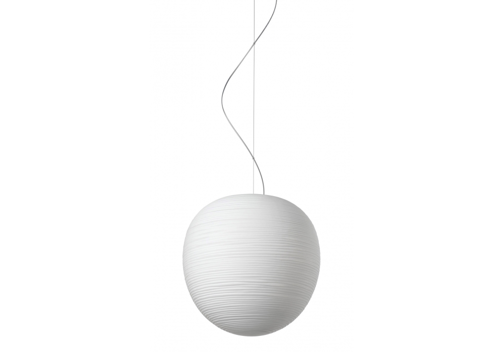Rituals XL Sospensione è una lampada in vetro disegnate da Ludovica+Roberto Palomba per Foscarini. Versione LED Dimmerabile. L'effetto rigato del vetro soffiato caratterizza questa collezione di lampade dal design sinuoso e avvolgente. L'effetto gessoso, ricavato da un processo manuale, valorizza la particolare texture di Rituals amplificando il risultato estremamente elegante.