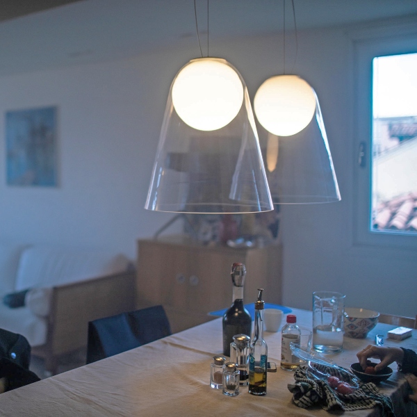 Satellight Sospensione di Foscarini è perfetta per ambienti diversificati per stile e funzioni grazie alla semplicità del design realizzato in vetro soffiato.