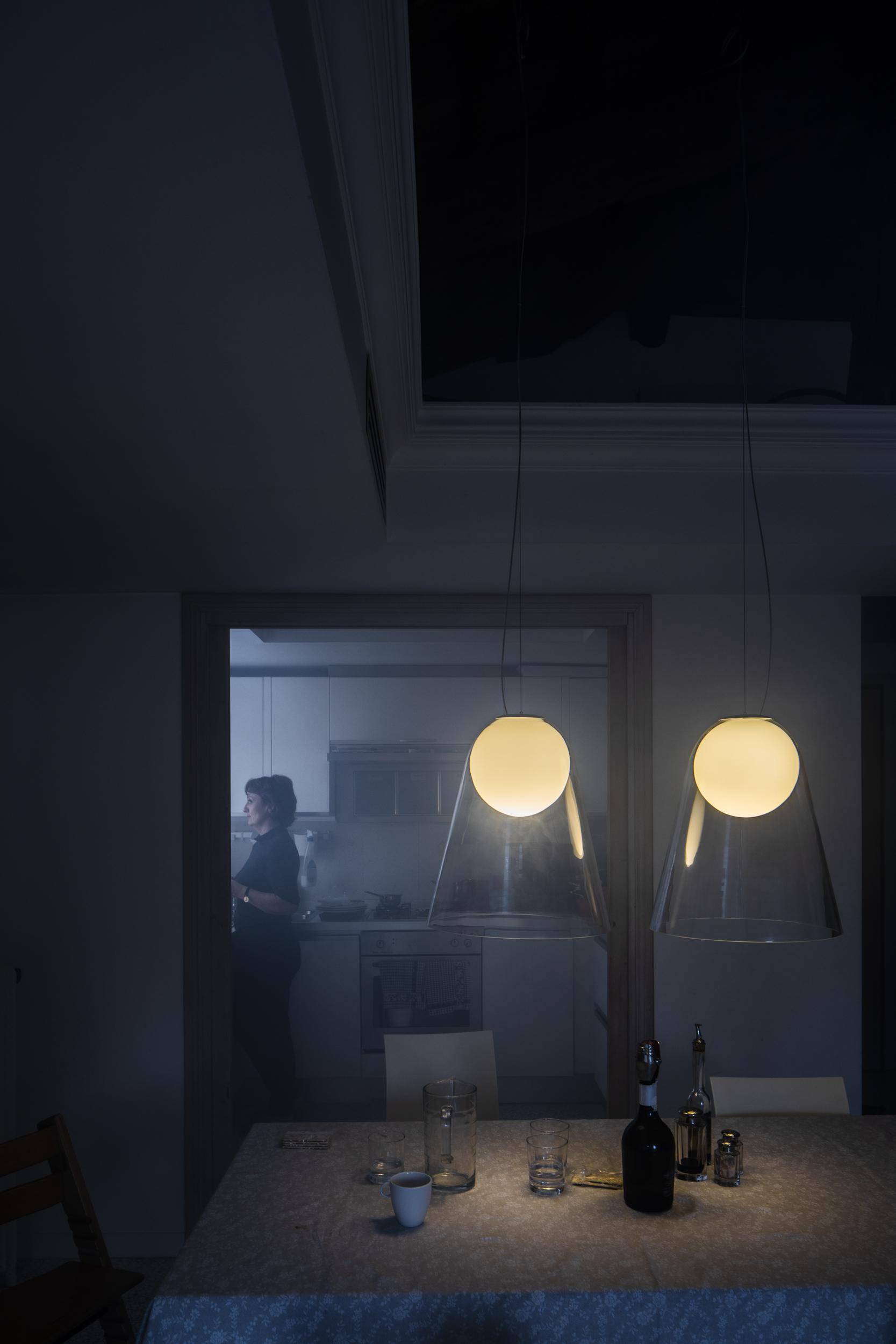 Satellight Sospensione è parte di una collezione di lampade disegnata da Eugeni Quillet per Foscarini. La magia di un globo luminoso sospeso nel nulla e rinchiuso in una campana di vetro soffiato a bocca, che lo sostiene trattenendo la sua luce. Satellight possiede una poetica pura e immediata.