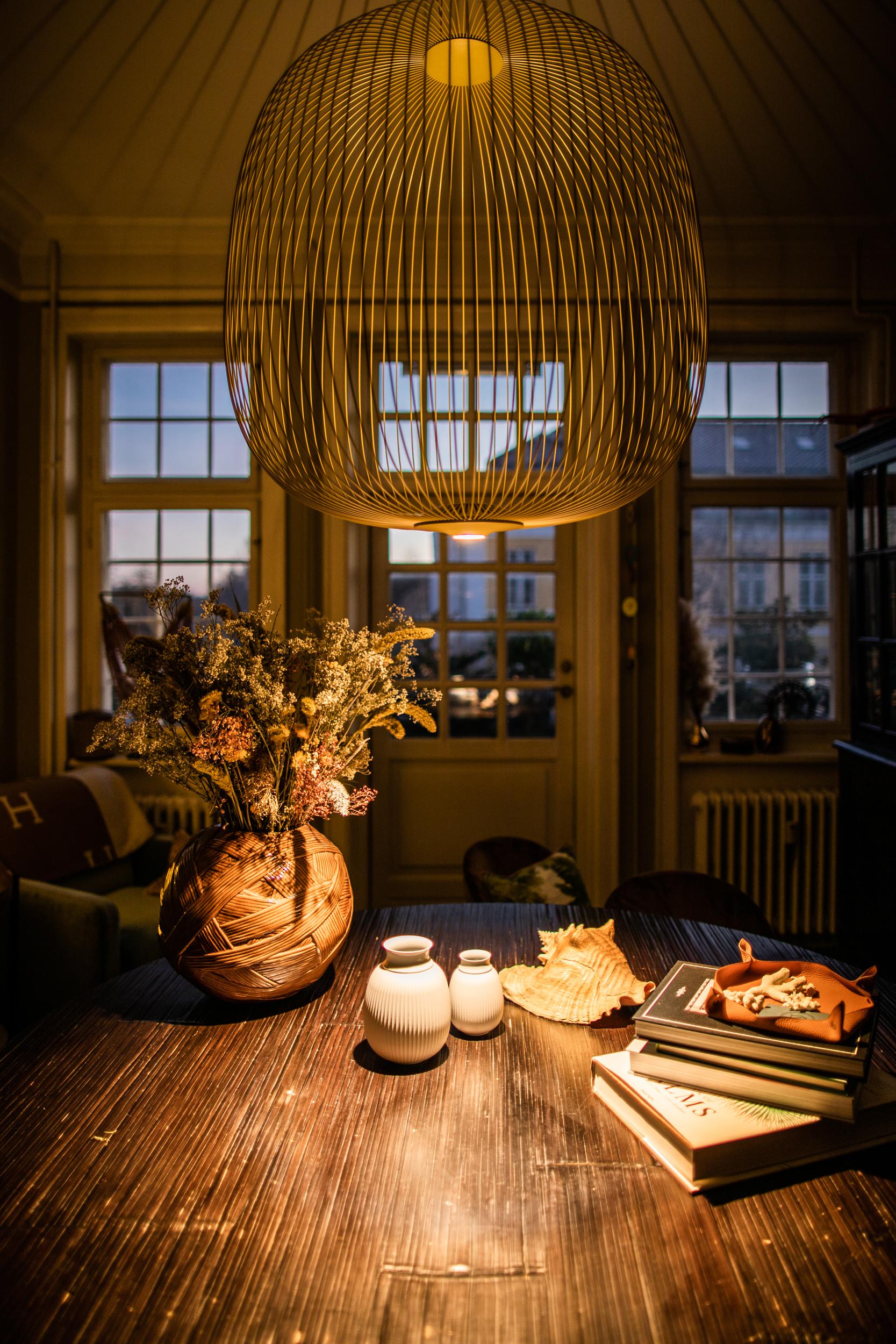 Leggera e versatile, Spokes di Foscarini crea un bellissimo gioco di ombre e luci valorizzato dalla forma morbida del diffusore e dai volumi solidi. Emissione della luce diffusa e diretta verso il basso.