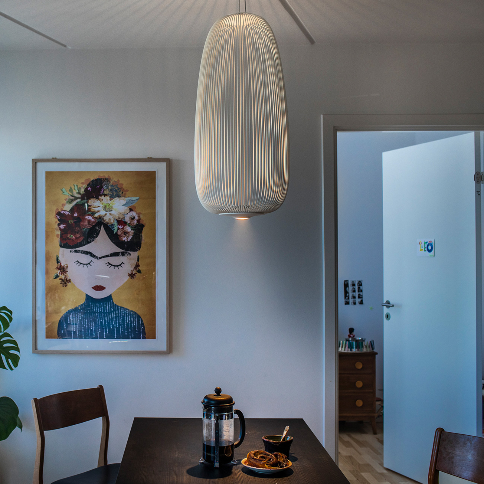 Antiche lanterne o domestiche voliere? Le lampade a sospensione Spokes in realtà nascono dall'osservazione di una ruota di bicicletta, da qui il nome che in inglese significa raggi.