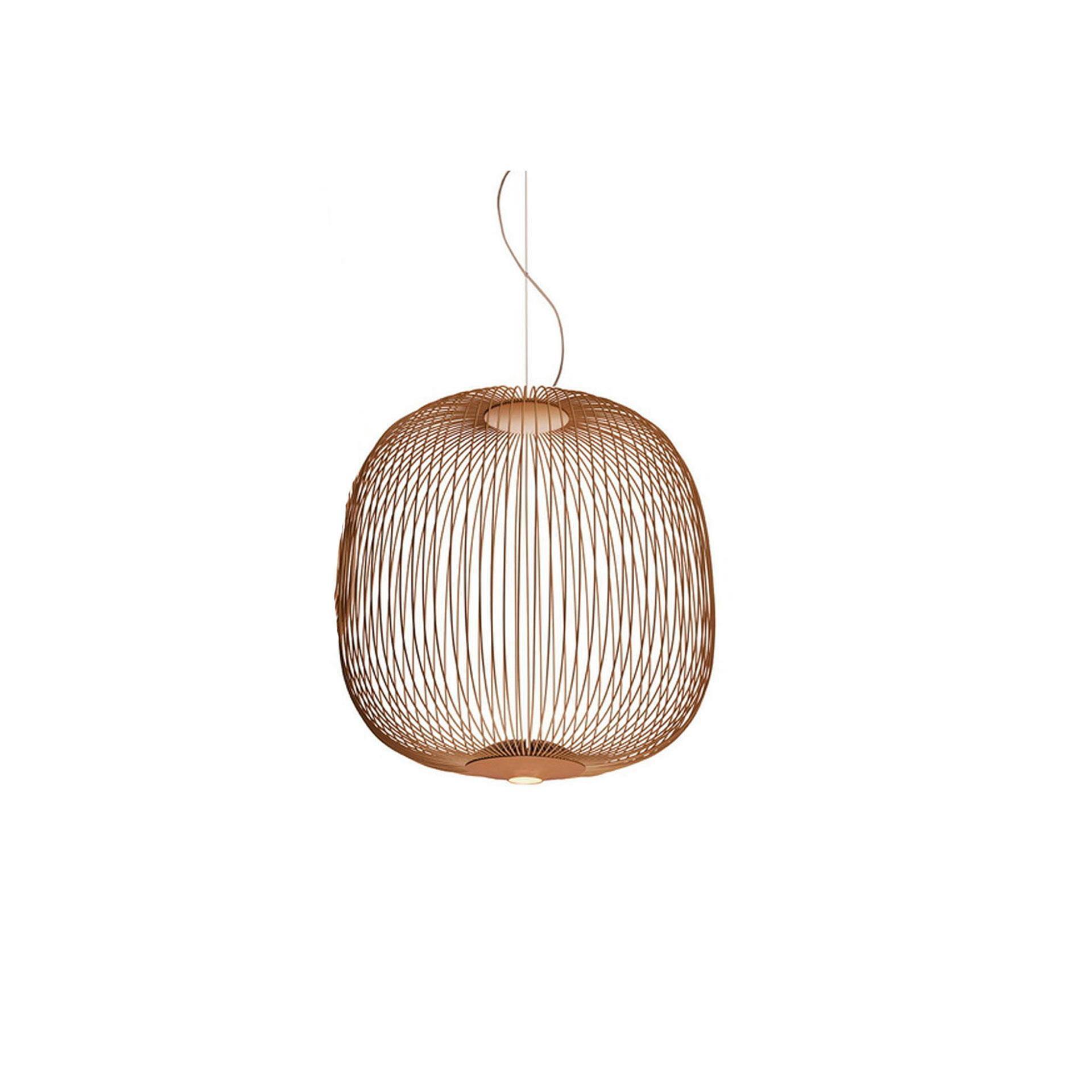 Caratteristiche tecniche Dimensioni: Ø 52 cm - H. 52,5 cm Sorgente luminosa: LED inclusi 30W (25 + 5) - 2700°K - 3220lm - CRI>90. Versione Dimmerabile Materiali: acciaio e alluminio verniciato. Finiture: rame