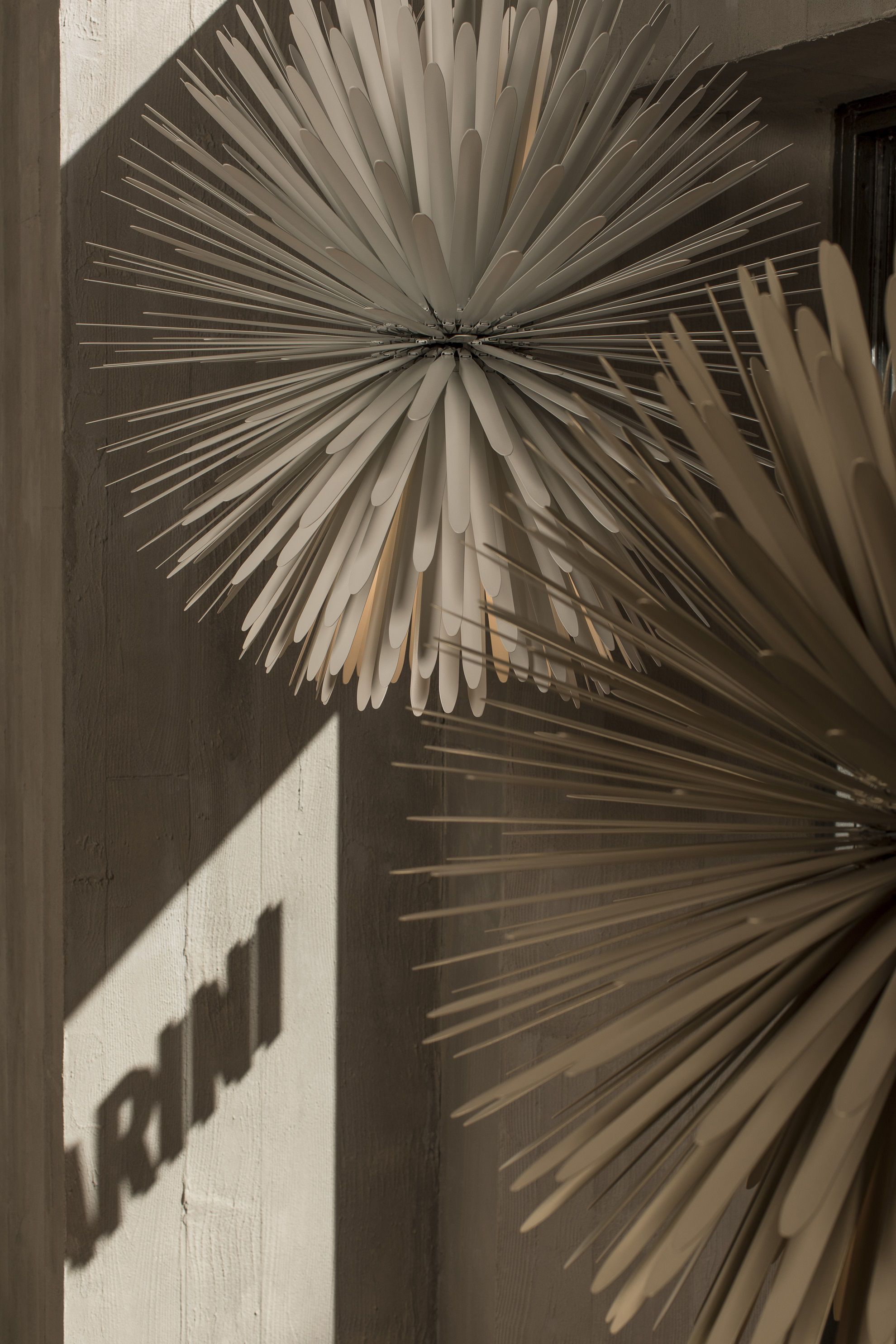 Lampada a sospensione Sun Light Of Love si caratterizza per il design che confonde i contorni, ridefinisce il concetto di dentro e fuori proprio come fa la luce del sole. La lampada si compone di 390 raggi disposti per schermare e riflettere la luce a LED del nucleo centrale, fornendo una luce morbida e diffusa. Disponibile in due colori bianco e oro.