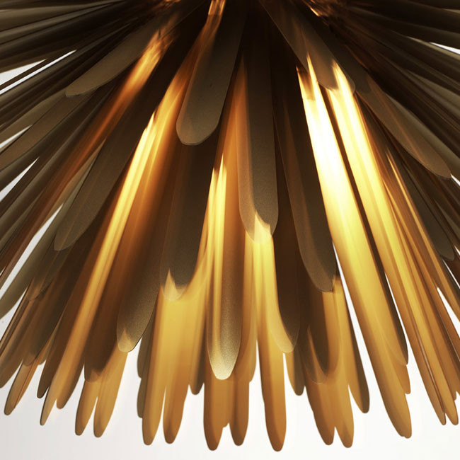 Lampada a sospensione Sun Light Of Love si caratterizza per il design che confonde i contorni, ridefinisce il concetto di dentro e fuori proprio come fa la luce del sole. La lampada si compone di 390 raggi disposti per schermare e riflettere la luce a LED del nucleo centrale, fornendo una luce morbida e diffusa. Disponibile in due colori bianco e oro.