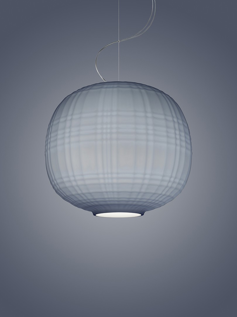 Realizzata con la tecnica della soffiatura a bocca in uno stampo, Tartan di Foscarini si presenta al pubblico con un particolare incrocio di linee perpendicolari che ricorda il motivo geometrico del kilt. L'acidatura della superficie contribuisce inoltre a conferire al progetto una morbidezza materica visiva e tattile.