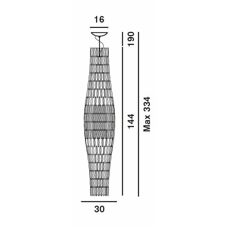 Dimensioni : Dimensioni del modello standard (presentato nella foto) : Ø 30cm x H 144cm - Cavo 200cm - Fissaggio soffitto 16CM
