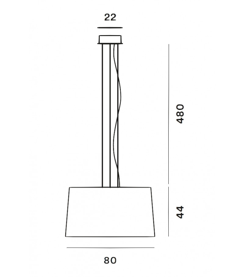 Caratteristiche tecniche Dimensioni: Ø 80 cm - H. 44 cm Sorgente luminosa: LED inclusi 81W (54 + 27 Mid-power) 3000°K 8517lm CRI>90 106lm/W. Materiali: diffusore in materiale composito su base di fibra di vetro verniciato; discor superiore in PMMA prismatico; rosone in metallo verniciato; cavo elettrico trasparente, cavi sospensione in acciaio. Finitura: nero