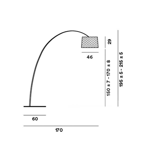 Dimensioni: L. 170/200 cm - P. 46 cm - H. 190/280 cm Sorgente luminosa: LED Energy class A++ Materiali: diffusore e stelo in materiale composito su base di fibra di vetro verniciato; diffusore in PMMA; base in metallo verniciato. Finitura: carminio.
