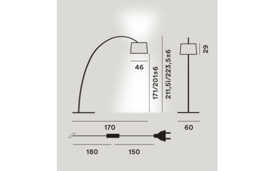 Altezza minima soffitto: 280 cm. Sorgente luminosa: LED (inclusi) 28W, 2700K, 3840lm, CRI>90.