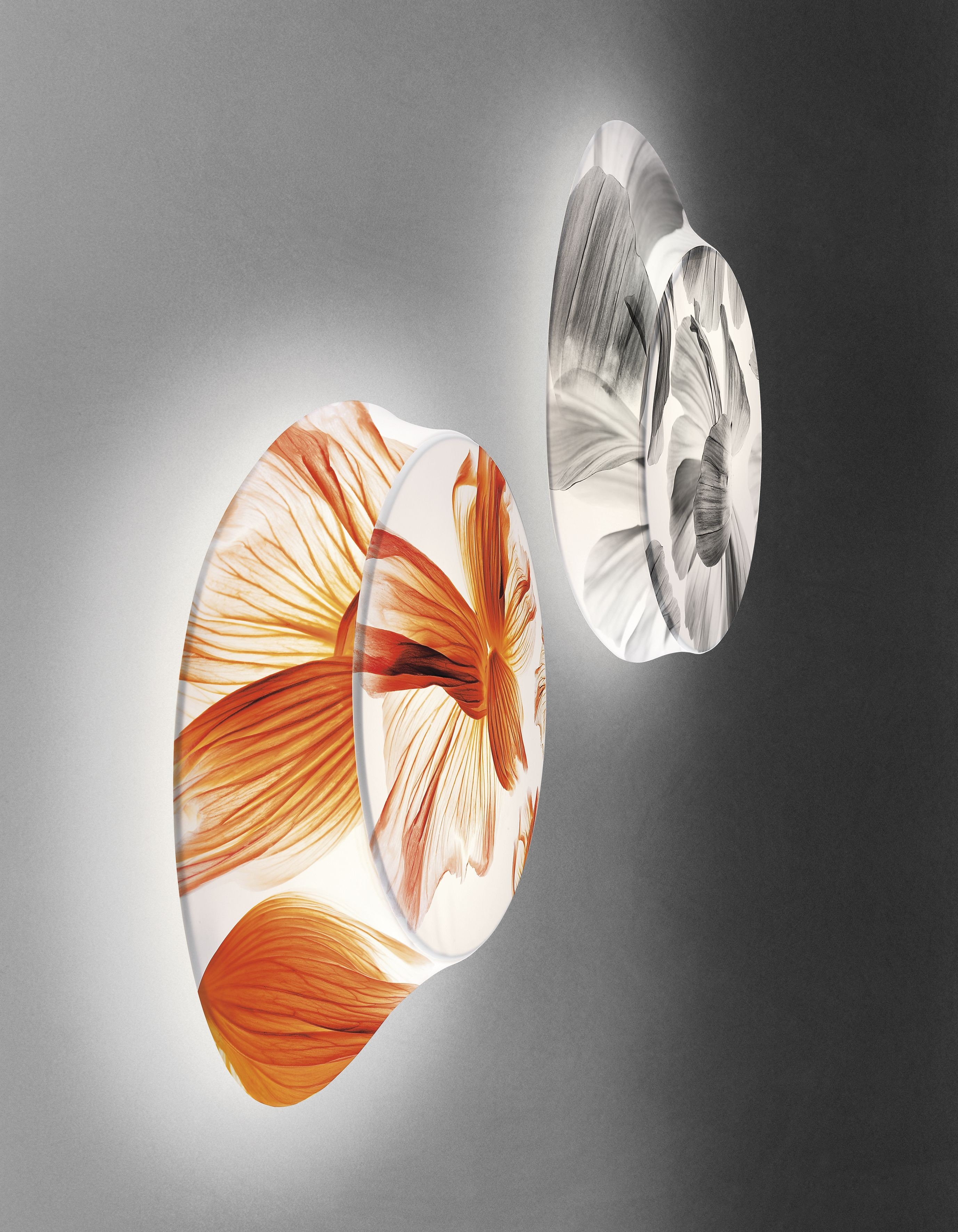 Una realtà che dà forma ai propri sogni. Un laboratorio tecnologico e creativo che insieme a tanti altri designer di tutto il mondo, immagina, sviluppa e produce non solo lampade ma emozioni. Un’azienda libera, appassionata, fuori dagli schemi e dentro il mondo in cui vive e lavora. Questo è Foscarini. Poesia e funzionalità sono i valori caratterizzanti di Wagashi, frutto della sintesi di due diverse sensibilità creative allo sviluppo del progetto: la particolarità della forma, sviluppata dal designer Luca Nichetto è vestita dalla mano dell’artista fotografo Massimo Gardone. Wagashi è infatti una lampada da parete e da soffitto composta da una struttura metallica vestita da un tessuto stampato e conformato per adattarsi perfettamente allo scheletro. Il tessuto come elemento diffusore permette di “vestire” Wagashi con decori diversi: dalle immagini floreali declinate in tre diverse varianti cromatiche ad un motivo dal sapore più razionale, chiamato “wires” perché ricorda un fitto intreccio di fili metallici. Disponibile in tre misure diverse, Wagashi è perfetta per caratterizzare ed arredare una parete o un soffitto, dove si voglia offrire anche un’ottima resa luminosa.