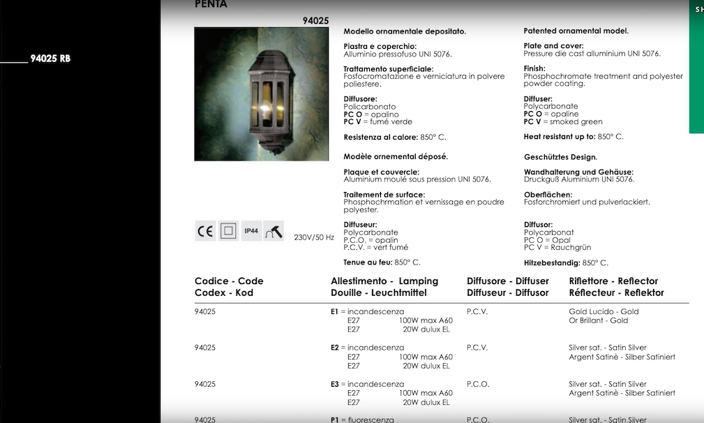 Garden Light Applique Penta IP44 Nero Bronzo Art. 94025