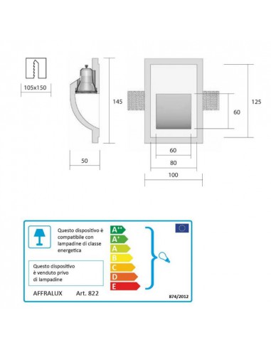 Installazione Incasso Ambiente Per interni Finitura Gesso Peso 0,31 kg Fonti luminose disponibili GU10 Tensione 220-240V Potenza MAX 4,5W Lampadina inclusa No Materiali principali Gesso, alluminio Conformità Classe di isolamento 2