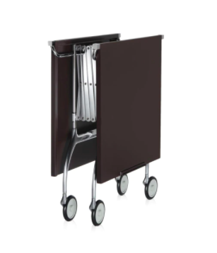 Battista, oltre ad essere un pratico carrello, caratterizzato dalla riuscita combinazione compositiva tra materiali plastici e metallo, si propone come vero e proprio tavolo allungabile e pieghevole ideale per buffet e aperitivi o come piccolo tavolo da appoggio.