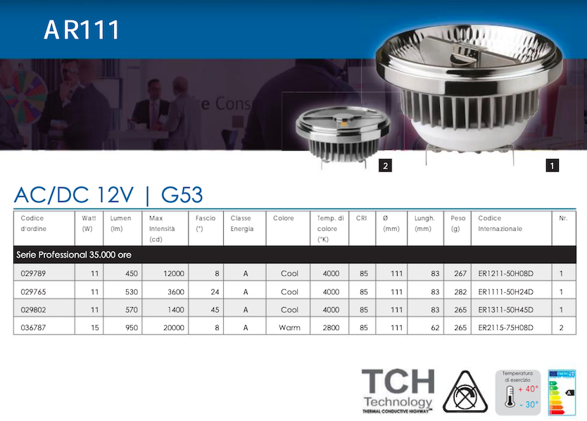 Megaman LED AR111 G53 11W 4000K 40000 Ore 45 Gradi MM02980
