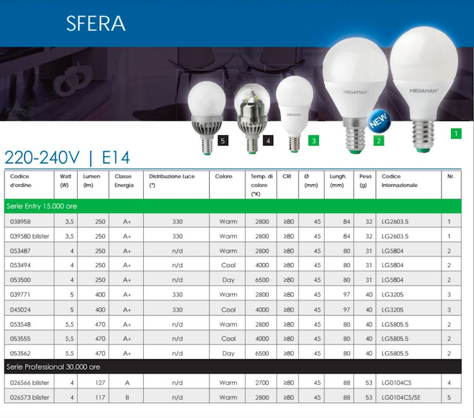 Megaman LED Sfera opale 3,5W E14 250 Lumen 2800K 15000 Ore MM03895