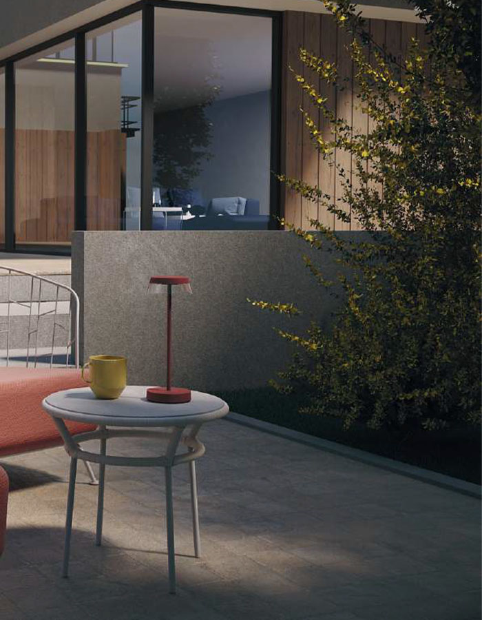 Iluna è una lampada versatile utilizzabile sia per esterni che per  interni, è perfetta come lampada da comodino o da salotto. La lampada da tavolo per esterni iluna è equipaggiata con LED SMD.  Per accendere è sufficiente premere l’interruttore push ON/OFF, sulla parte inferiore (sulla base). Per attivare il  dimmer push da 100% – 5%, con memoria dell’intensità luminosa basta tenere premuto il tasto fino a raggiungere l’intensità desiderata. Iluna è dotata di batteria Li-ion 18650, capacità 2.200mA x 2, con protezione e limitatore di carica. Base di ricarica con presa USB inclusa. Il tempo di ricarica completa è di 6 ore, se utilizzata al massimo di luminosità la durata è di 9 ore. Il corpo è in pressofusione di alluminio verniciato opaco disponibile in sette colori differenti.
