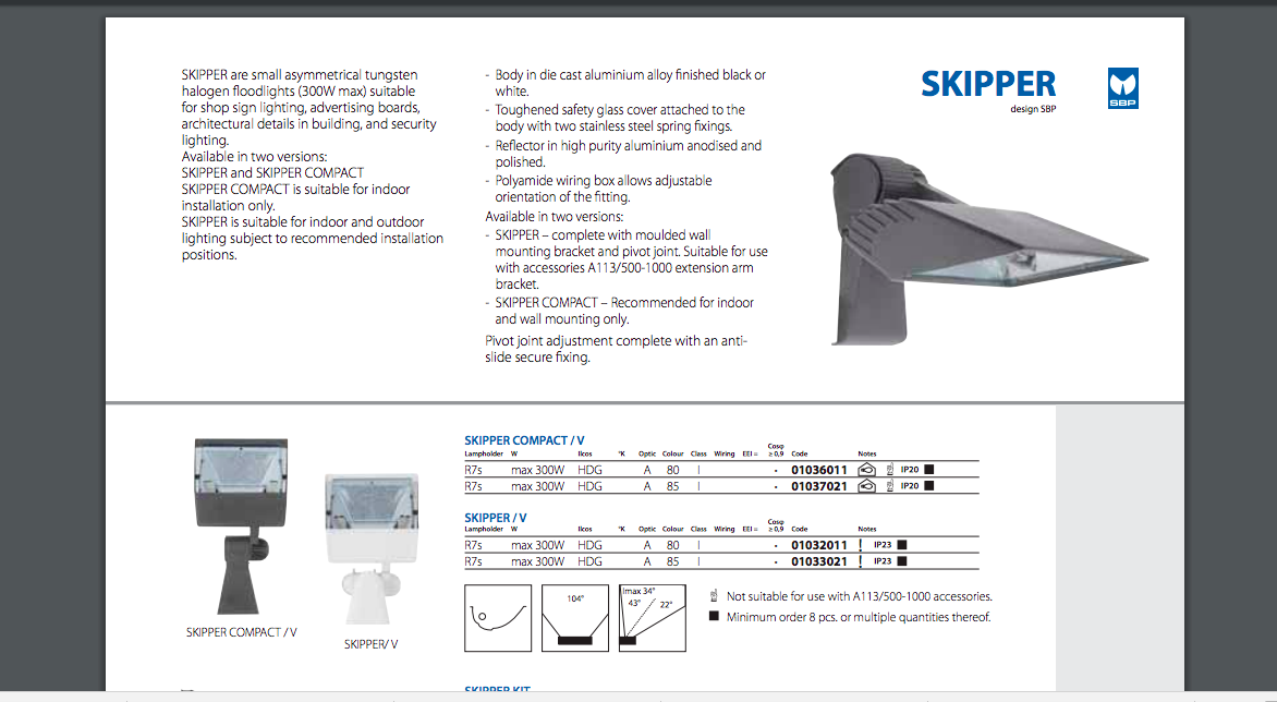 Skipper 01033021 V-85 300W Proiettore Bianco R7s
