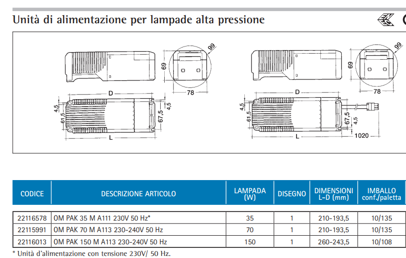 22115991 OM PAK 70 M A113 230-240V 50 Hz 70 1 210-193,5 10/135